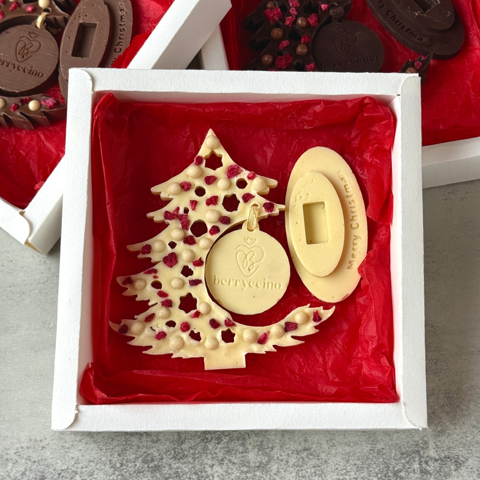 Available in milk chocolate, dark chocolate, or white chocolate, this elegant design makes a stunning gift for Christmas celebrations, corporate holiday gifting, festive tables, or anyone who appreciates luxury chocolate with a creative twist.